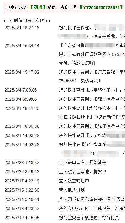 以前在别的转运公司,入库时间长,还要发邮件去查询,八达入库确认快,转运也很快,非常满意。