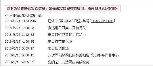 <p>整个过程经历了12天,速度还不错,一直用的B线,也比较省心</p>